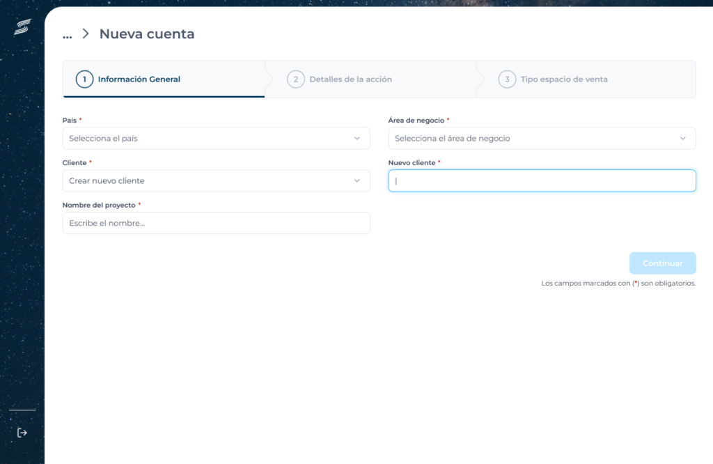 Elegir espacio de trabajo donde registrarás los datos