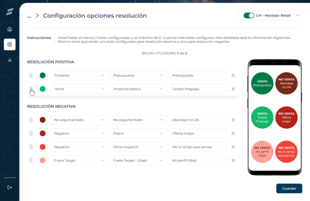 Configuración opciones de resolución