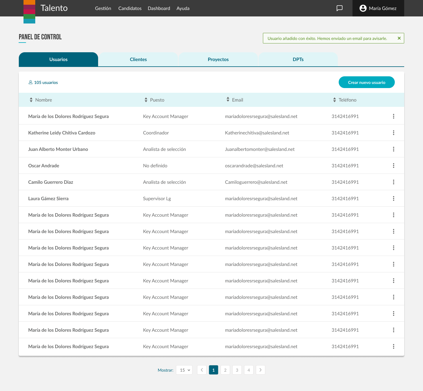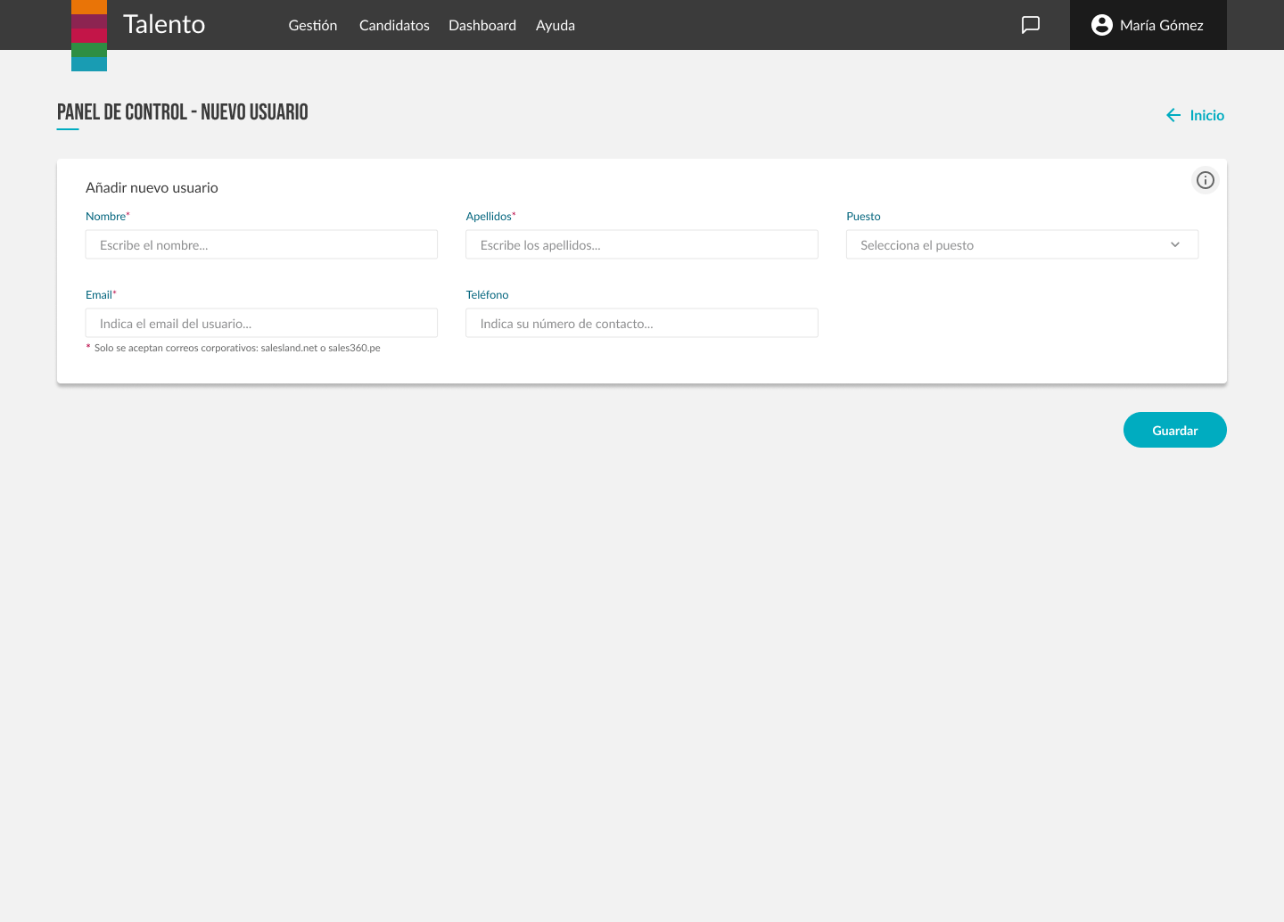 Talento es un ATS diseñado y desarrollado ad-hoc para Salesland, cuyo objetivo principal fue: