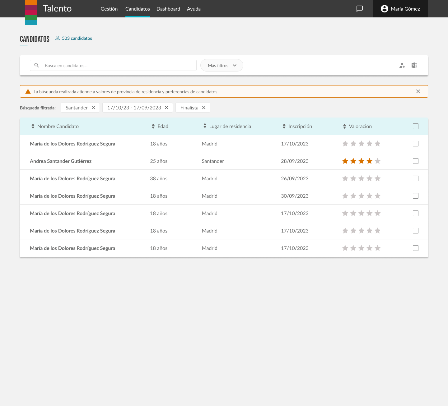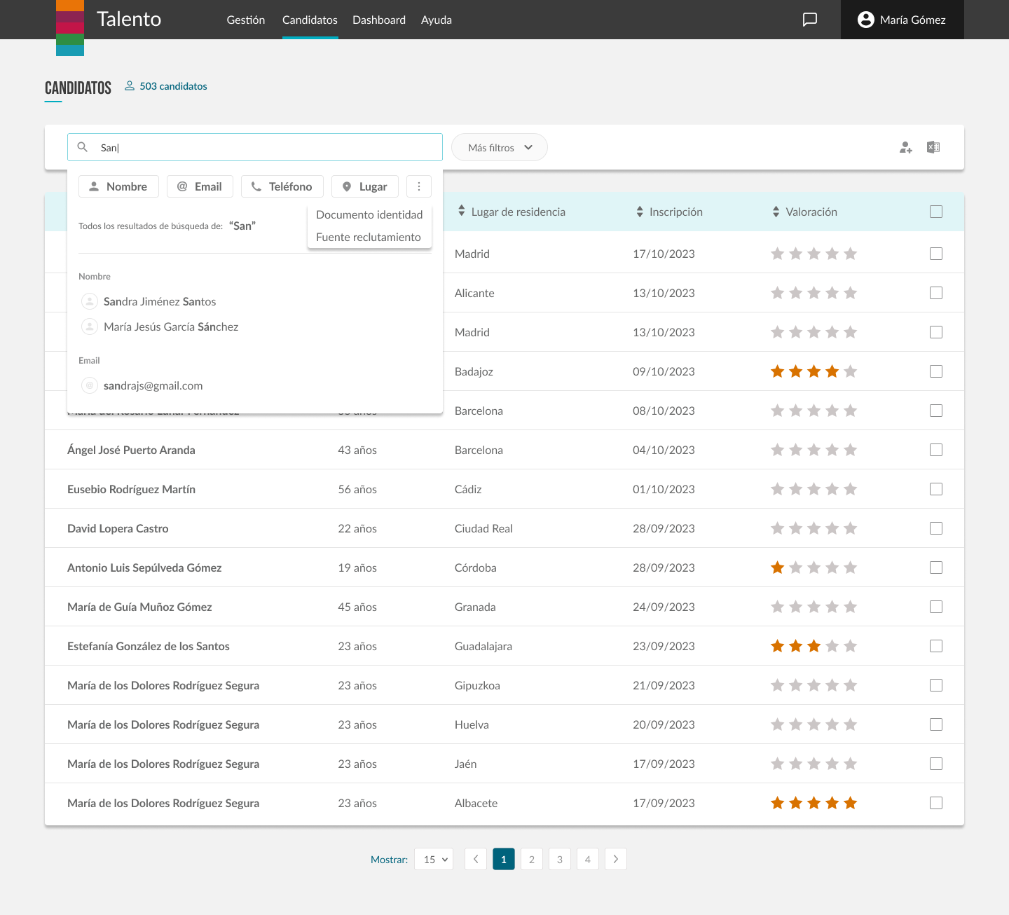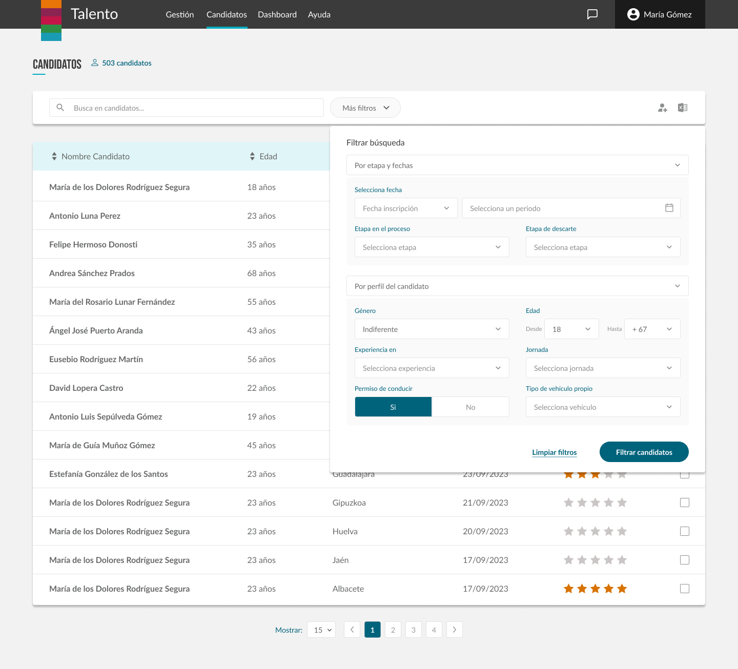 Gracias a esta funcionalidad, puedes buscar candidatos concretos, o encontrar al candidato más adecuado según su perfil.