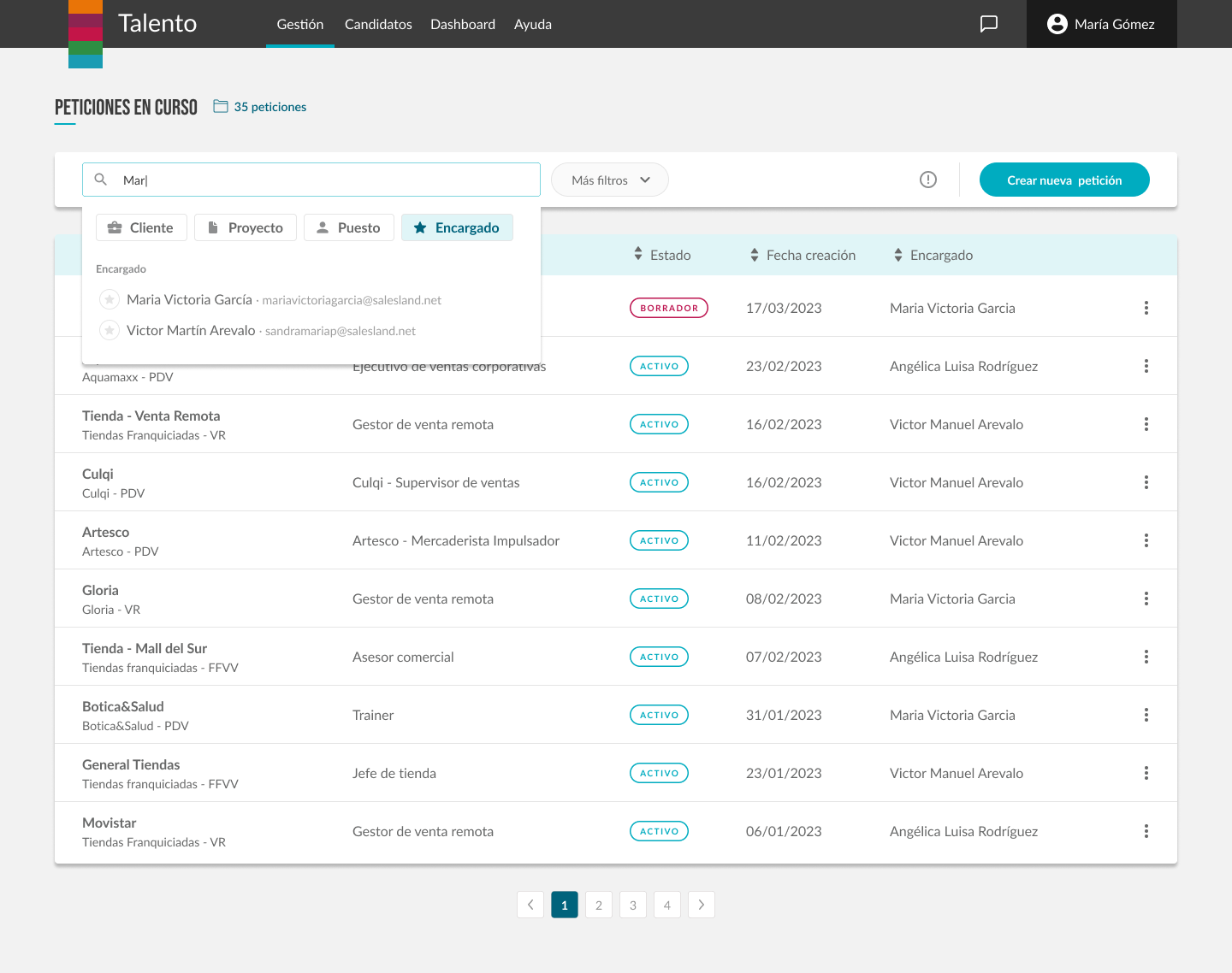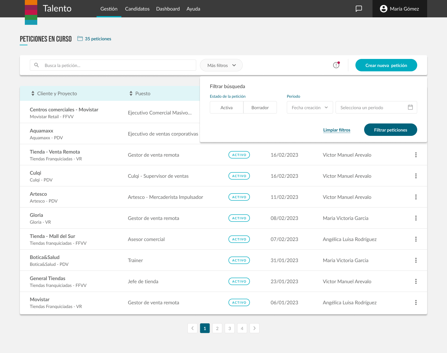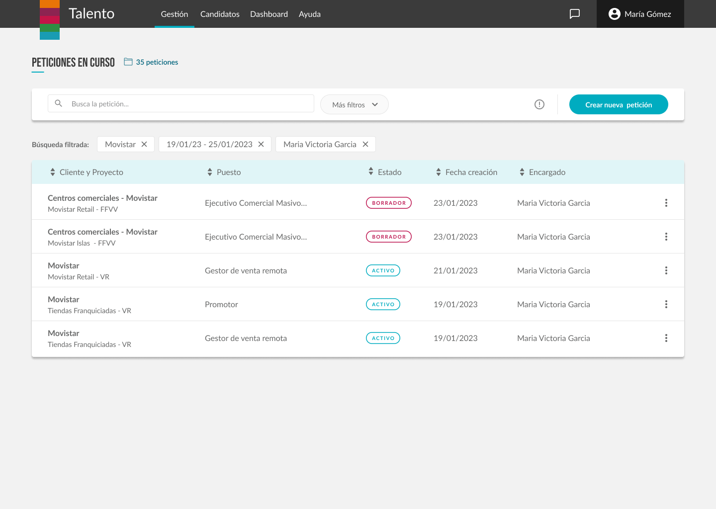 Por ejemplo, la creación de peticiones de necesidad (vacantes), o las etapas del candidato en nuestros procesos, fueron reiteradas varias veces hasta obtener una funcionalidad completamente adecuada y adaptada a todos los equipos.