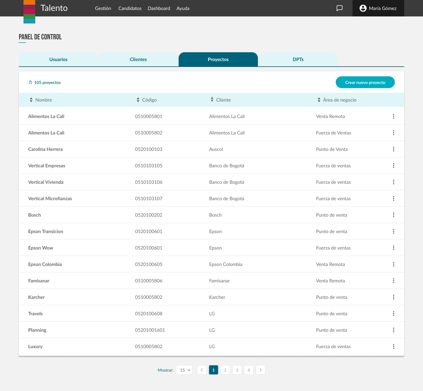 En este apartado los usuarios podían crear nuevos usuarios (empleados), clientes, proyectos…
